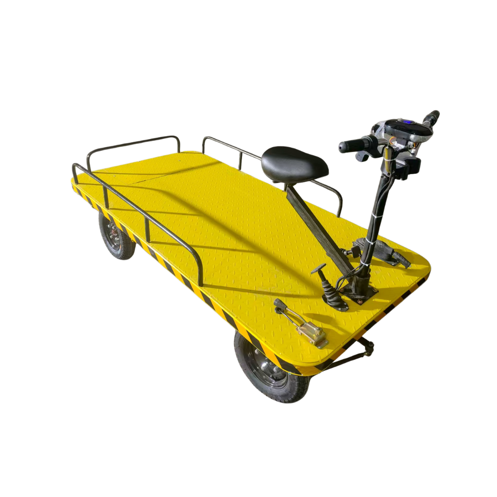 Erősített acélvázzal és vastagított hidas szerkezettel készült, nagy teherbírású elektromos platós szállítókocsi. Hosszú élettartamú, nagy kapacitású akkumulátorral szerelve, amely biztosítja a hosszú üzemidőt és a megbízható teljesítményt. Kiváló hegymászó képesség, 360°-ban forgatható ülés és könnyen kezelhető hátramenet segíti a felhasználót. Magas és alacsony fokozatú hajtóművel ellátva a különböző terepviszonyokhoz.